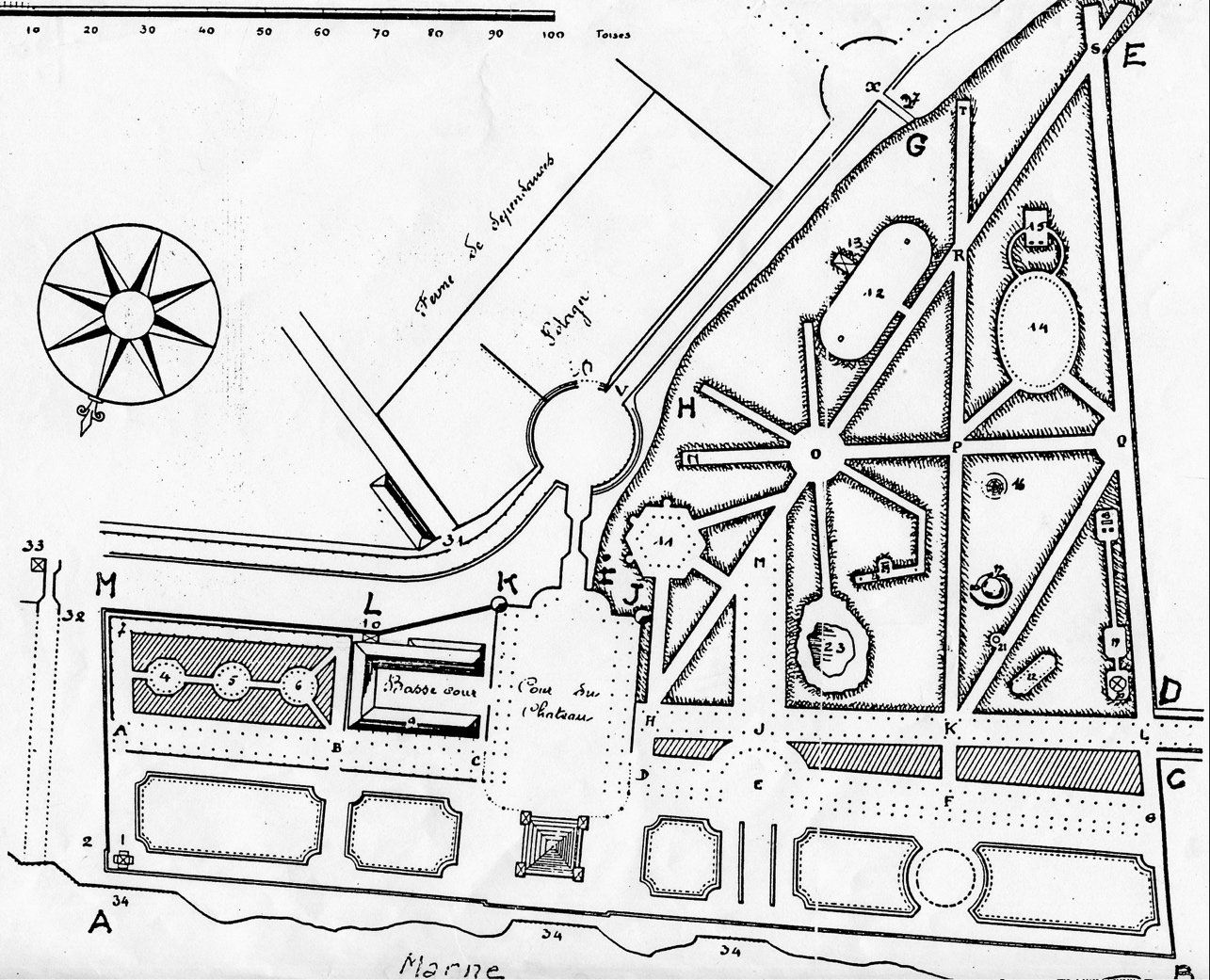 Plan en 1777 du parc du Château créé sous Claude Elisée de Court cinquante ans auparavant.