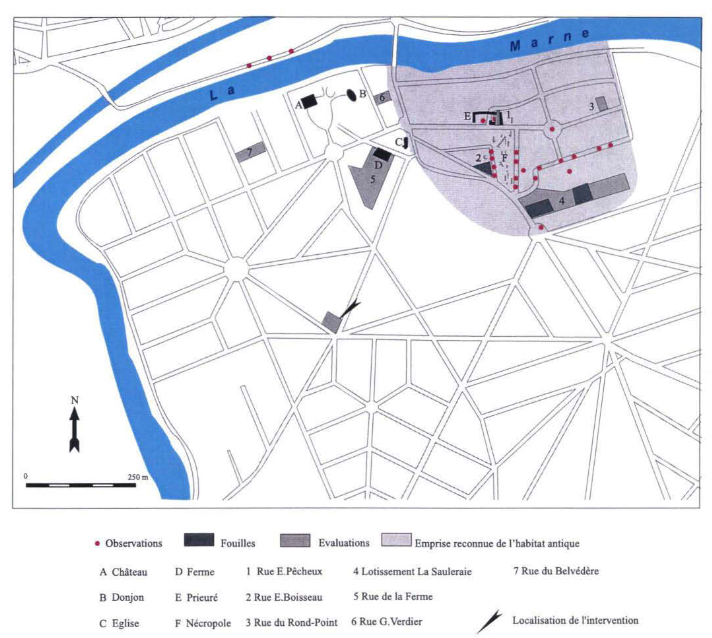 Carte des interventions archéologiques