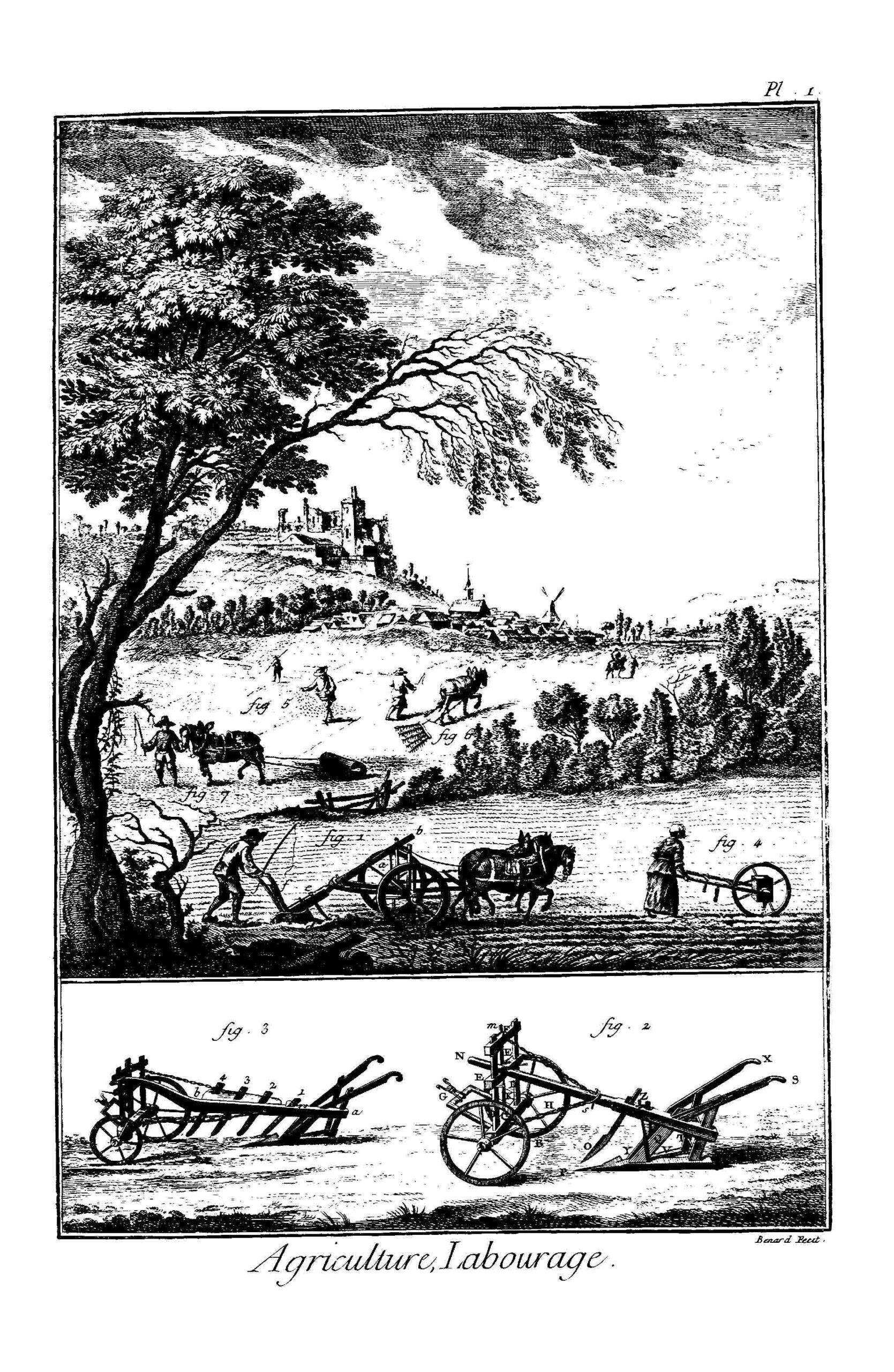 Planche extraite de l’encyclopédie de Diderot et d’Alembert : L’agriculture/labourage https://enccre.academie-sciences.fr/encyclopedie/article/v1-876-0/
