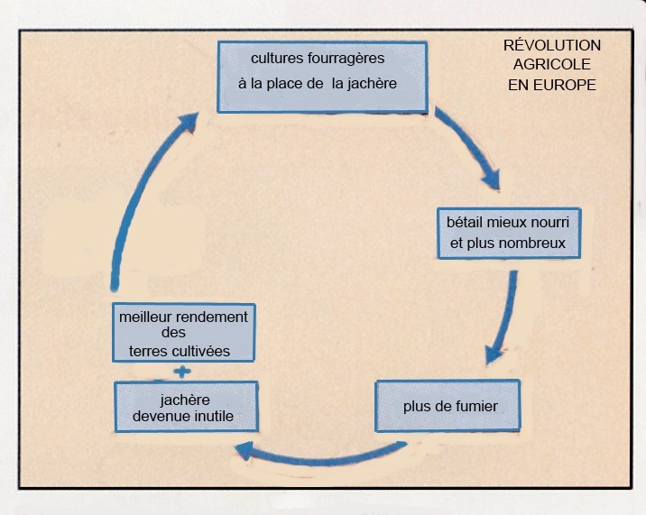 On réduisit les jachères en semant à la place des plantes fourragères comme la luzerne qui améliore avantageusement le sol. Mais cela contrariait les vaines pâtures des ovins.