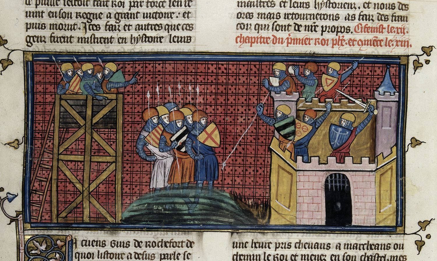 Siège de Gournay-sur-Marne illustré par Mahiet dans Les Grandes chroniques de France. British library
